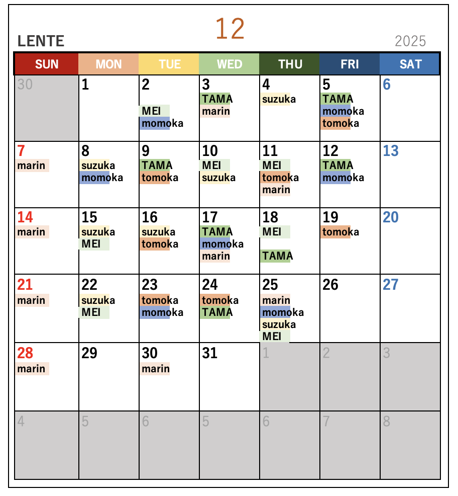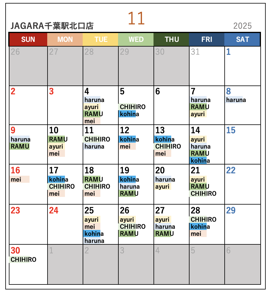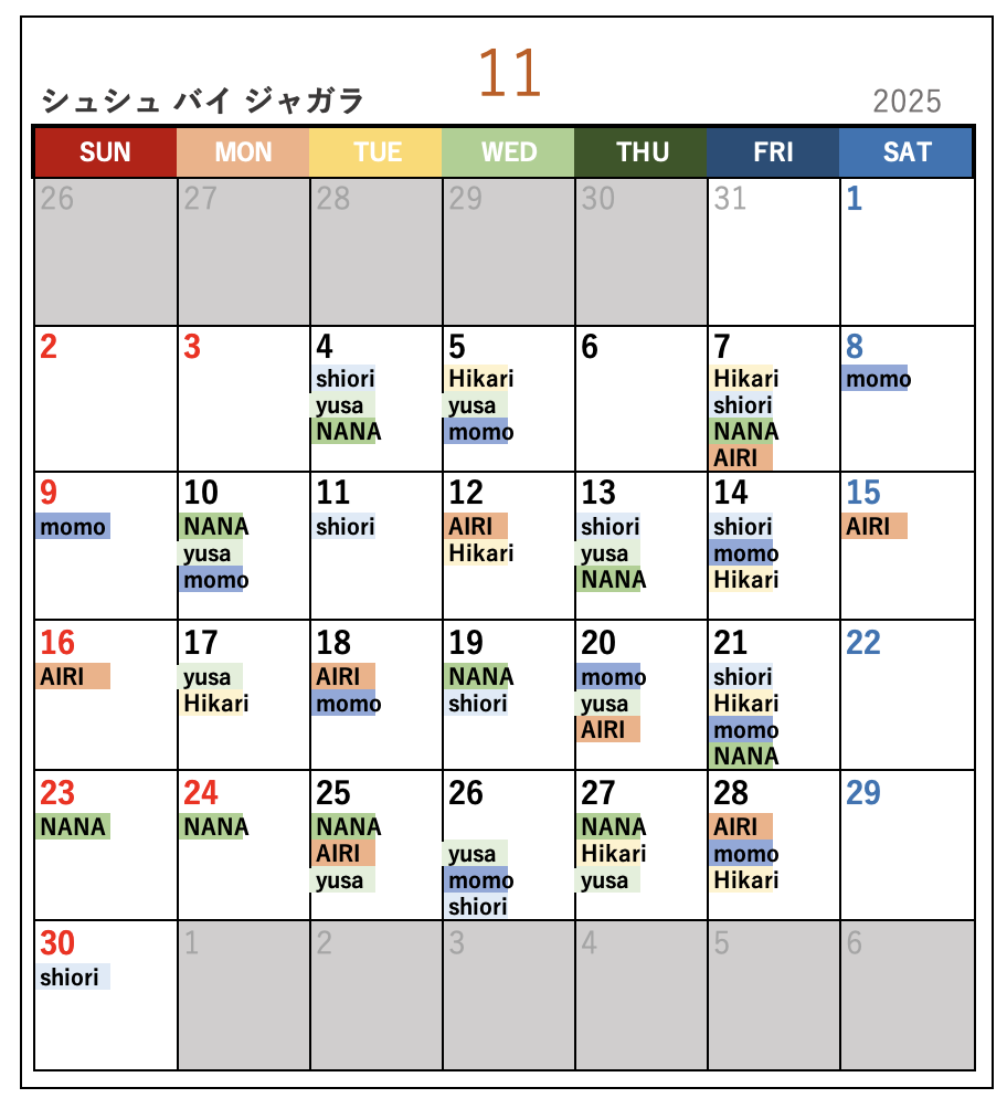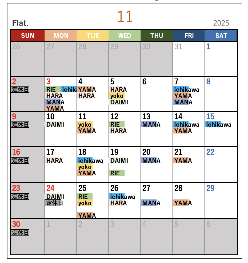 こちらのページでは各店のスタイリストの出勤スケジュールとWEB予約のご案内をしております。