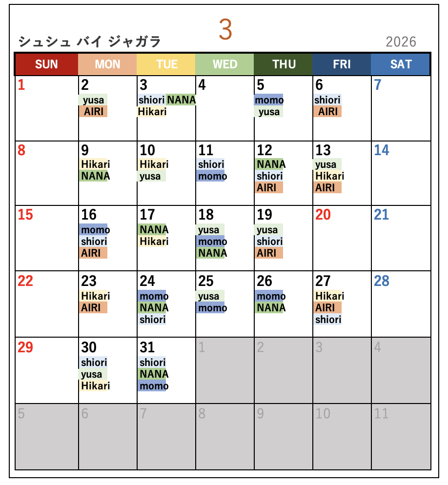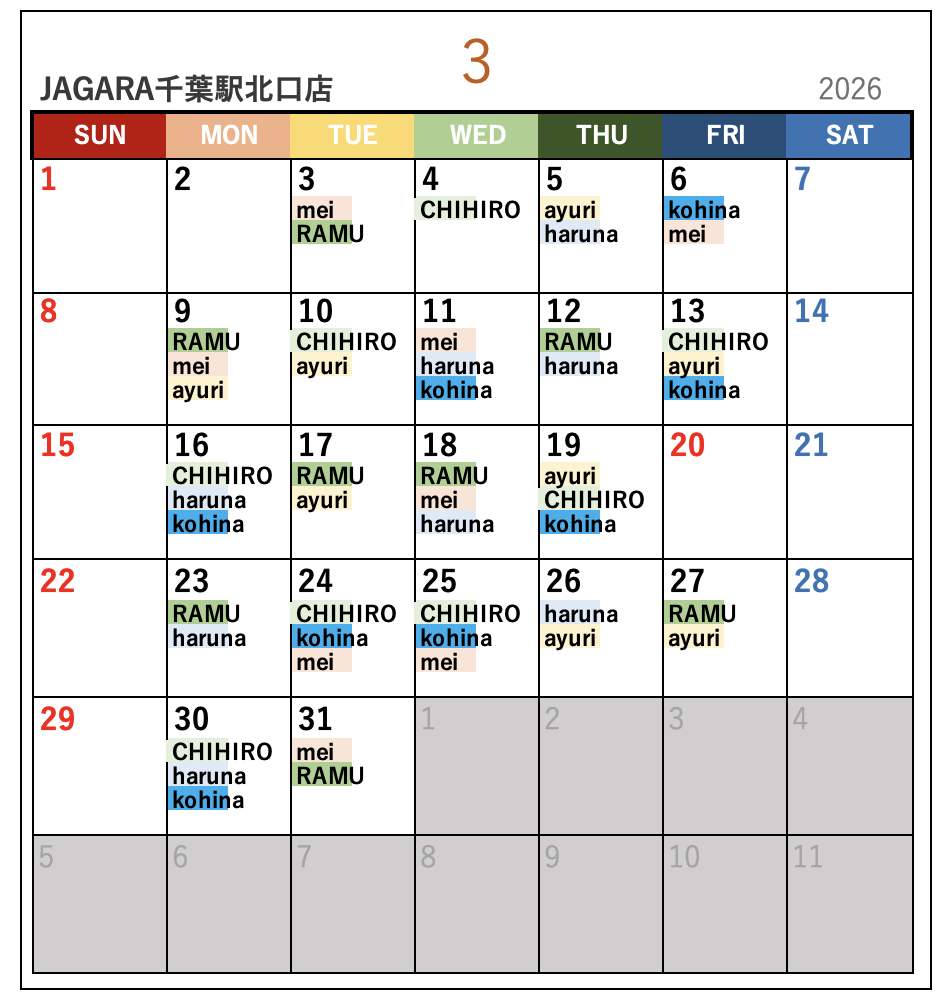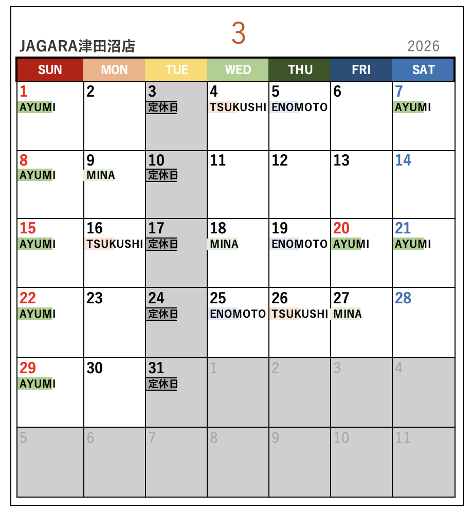 こちらのページでは各店のスタイリストの出勤スケジュールとWEB予約のご案内をしております。